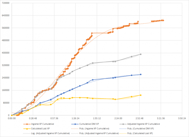 According to EnergiserX’s tests, roughly 130,000 experience points were lost over the course of three hours. At its worst, the hidden scaling system eventually awards only 4 percent of what is being reported.